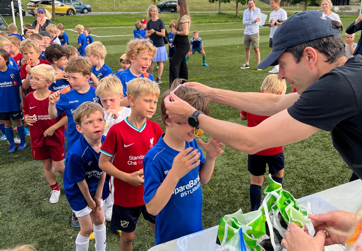 I overkant av 50 ivrige fotballgutter spilte først cup på Nadderud Arena, før det ble pizzafest og premieutdeling i Fanzone. Våre A-lagsfaddere, Nicolas Pignatel Jenssen og Marius Ulla, kom også innom for å hilse på - til stor glede for barna. Etter to sesonger med treninger under pandemien, var det utrolig hyggelig for guttene og samles på et slikt arrangement.