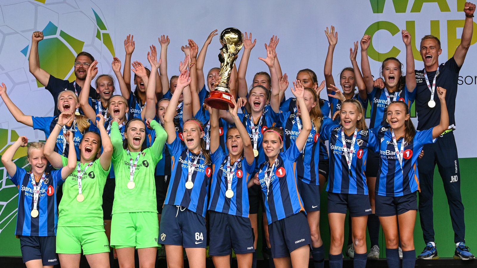 Samtlige 22 spillere gjennomfører en strålende turnering, preget av festspill som til slutt gjorde oss til det mestscorende laget i vår klasse, som også var den desidert største jenteklassen i turneringen, og etter 8 ubeseirede kamper sto vi altså sammen på hovedscenen og kunne løfte det store gullfargede Norway cup-trofeet, med en hel haug fantastiske støttespillere som feiret med oss.