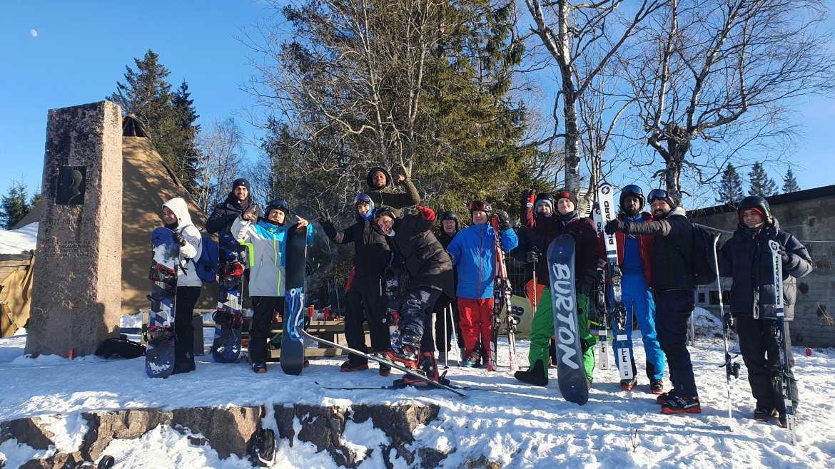 Noen startet dagen med et morgenbad(!), mens noen ble hentet av bussen for en deilig dag på ski i strålende solskinn.