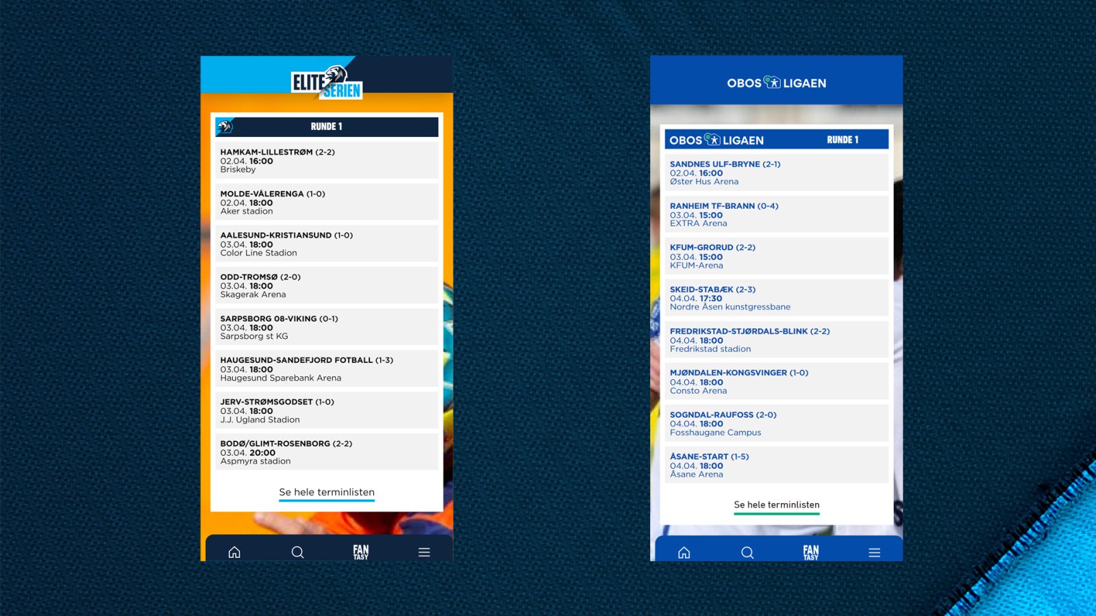 Rett før seriestart 2022 kom siste versjon av appene. Nå er det enda enklere å få appene våre og alle klubbene i Eliteserien og OBOS-ligaen på din mobil - se oppskrift her.