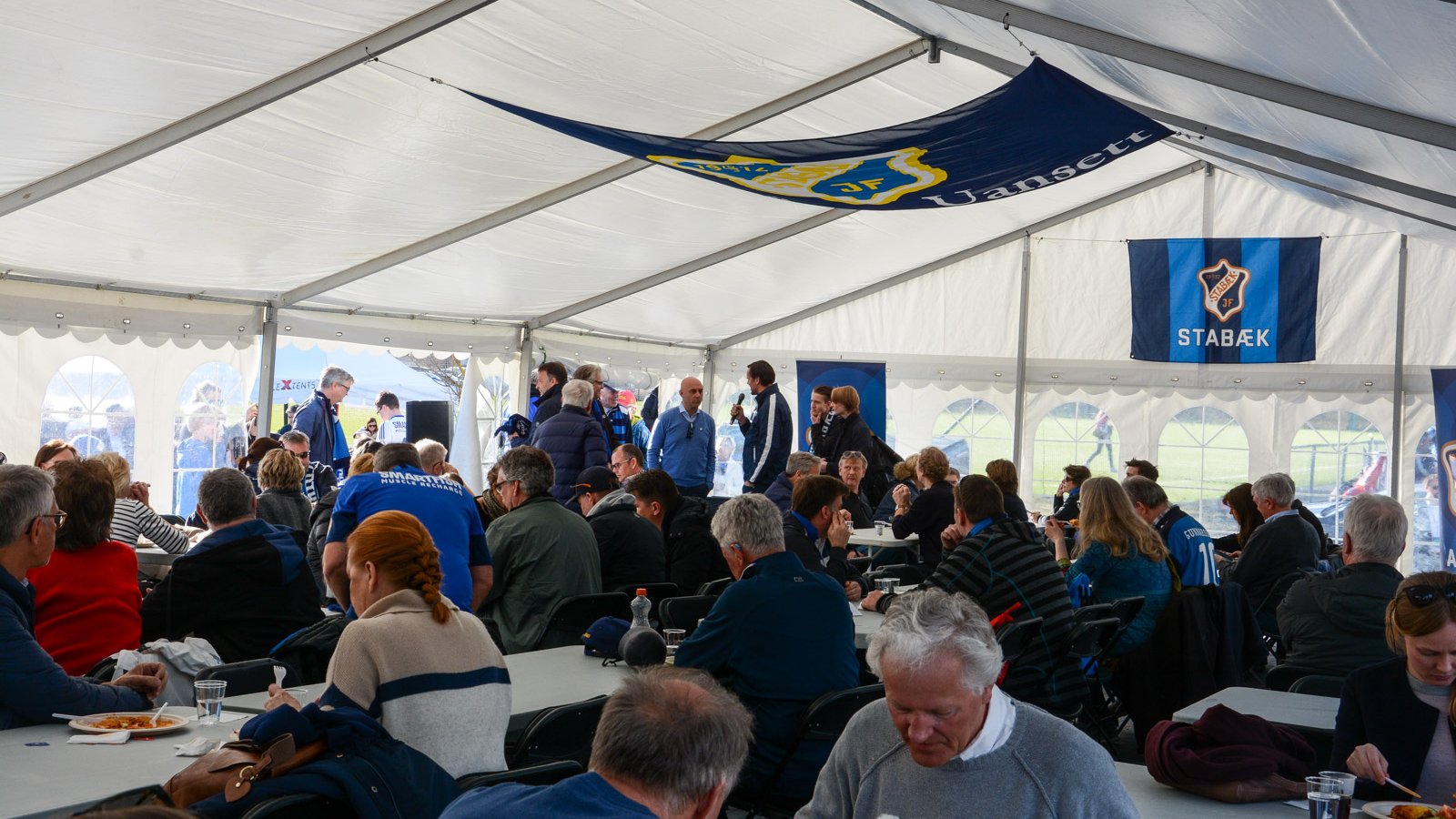 Lasagne-porsjonene gikk ned på høykant mens Toni Ordinas og Inge Andre Olsen la ut om forventningene til en ny sesong. Over høytaleranlegget ljomet Jan Gunnar Sollis eksklusive spilleliste med både Stabæk-låter og internasjonale hits.