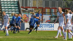 Etter ni minutter og et hjørnespark, scorer Melissa Bjånesøy årets første mål i Toppserien for Stabæk. Men bare ti minutter senere, sitter returmålet i våre nettmasker.